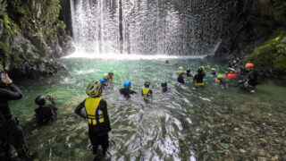 ほとけさまにお参りをして 今年の子ども会OB会はキャニオニングに行きました🏖️ 激しく冷たい川で自然の岩ででき…