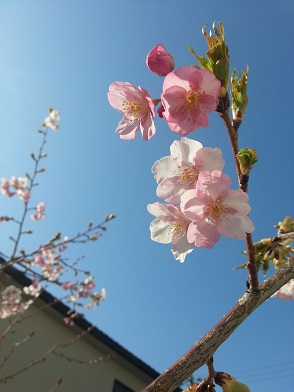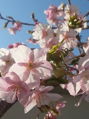 お寺では河津桜がただいま満開をむかえております。