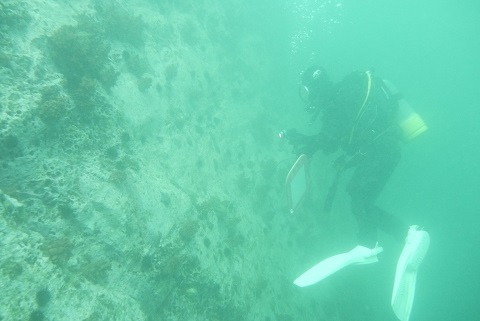 水温は12度、慣れないドライスーツを着ての潜水に緊張いたしました・・・。