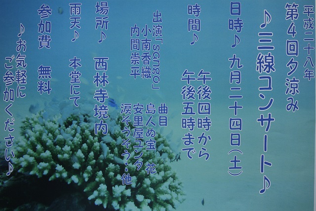 第4回 三線コンサートご案内 2016年9月6日 最終更新日時 : 2016年9月6日 rigter 三線コンサートのご案内です! 今年で第4回をむかえます☆ お寺に島風が吹きます ご参加無料!! どうぞお越しください!! \ 最新情報をチェック / Bluesky