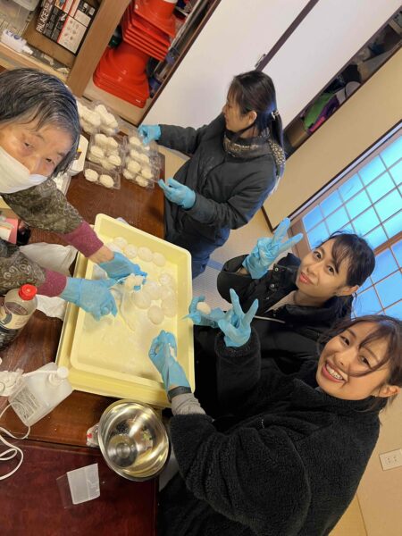 みんなで力いっぱいについて丸めたおもちは