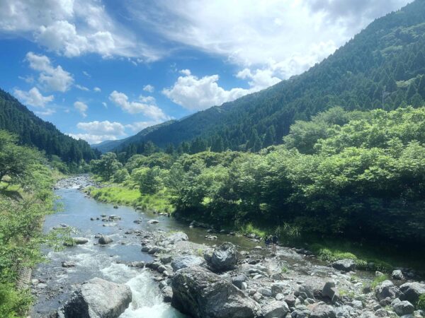 激しく冷たい川で自然の岩でできた滑り台を滑ったり川に飛び込んだり😆