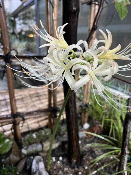 昨年、先輩から頂戴した彼岸花がお庭に咲きました。 白色の彼岸花 哀愁が何とも言えないです。ずっと見ていられます。 これからもこの時期に咲いてくれると、うれしいな。